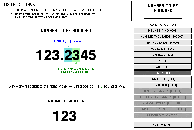 The process usually used in rounding is to look at the first digit to the right of the required rounding position and